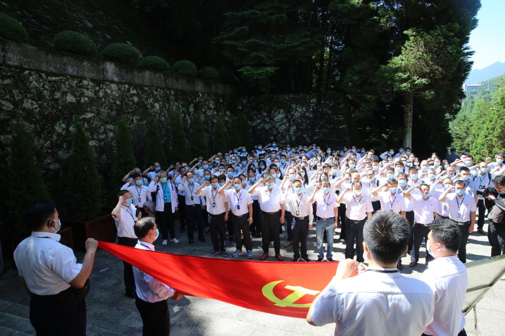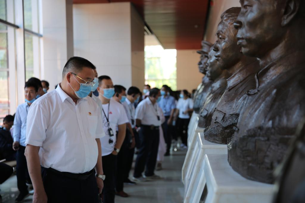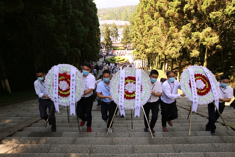 在井冈山革命烈士陵园内,全体党员怀着无比崇敬的心情来到这里敬献花圈,在烈士纪念堂深切祭奠缅怀革命先烈。