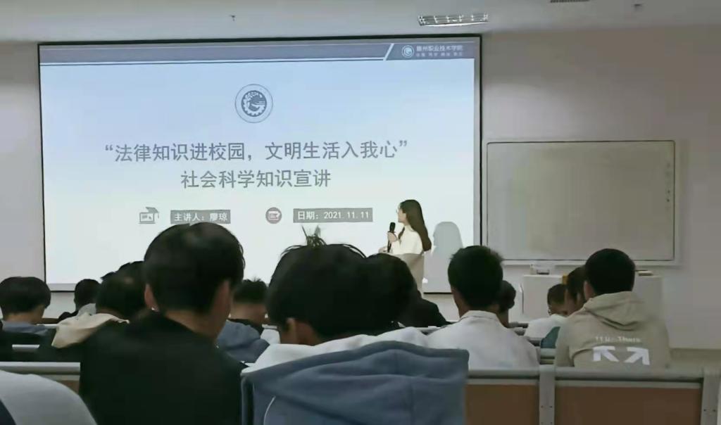 廖琼老师作《“法律知识进校园,文明生活入我心”社会科学知识》宣讲,引导同学们做一名知法、懂法、守法的文明大学生。