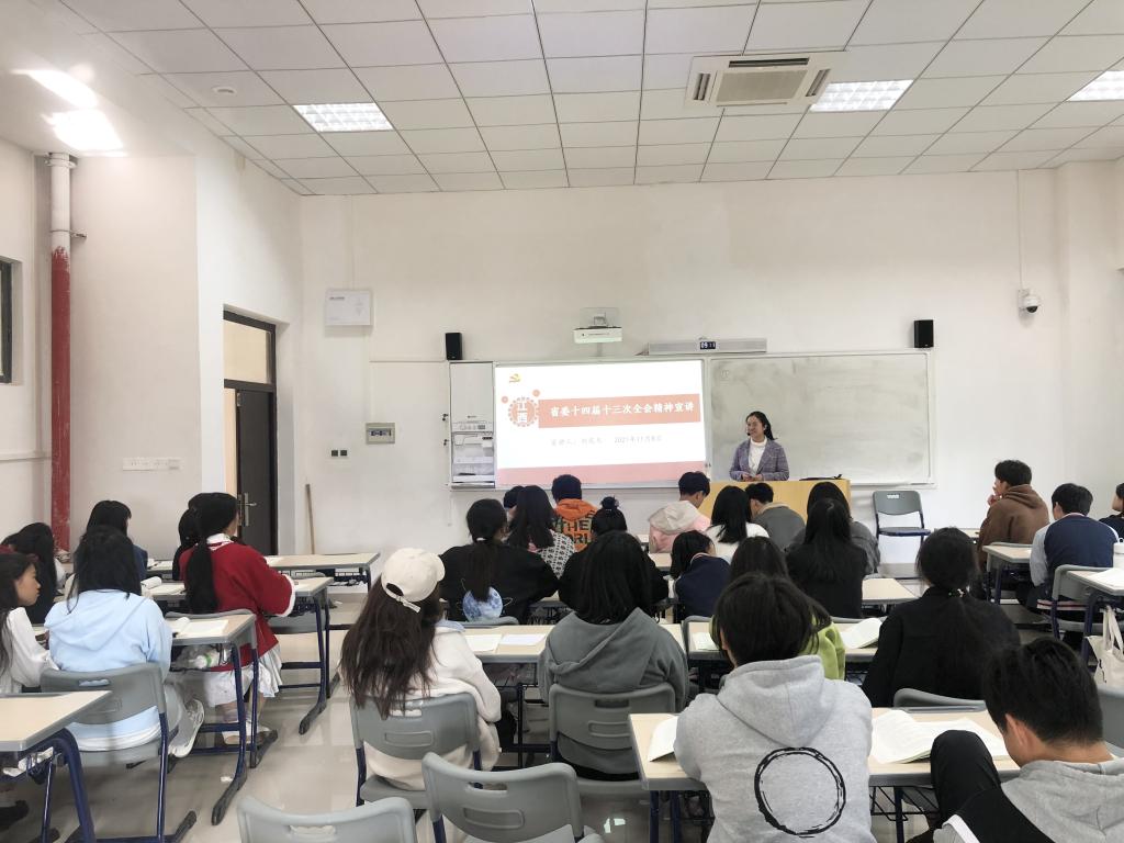 刘苑冬老师作《省委十四届十三次全会精神》宣讲,层层深入,紧扣重点,耐心分解。