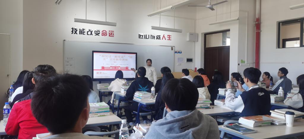胡丽萍老师作《“听党走、跟党走”“四史”宣传教育》宣讲,脉络清晰,激发了同学们学习“四史”的热情。