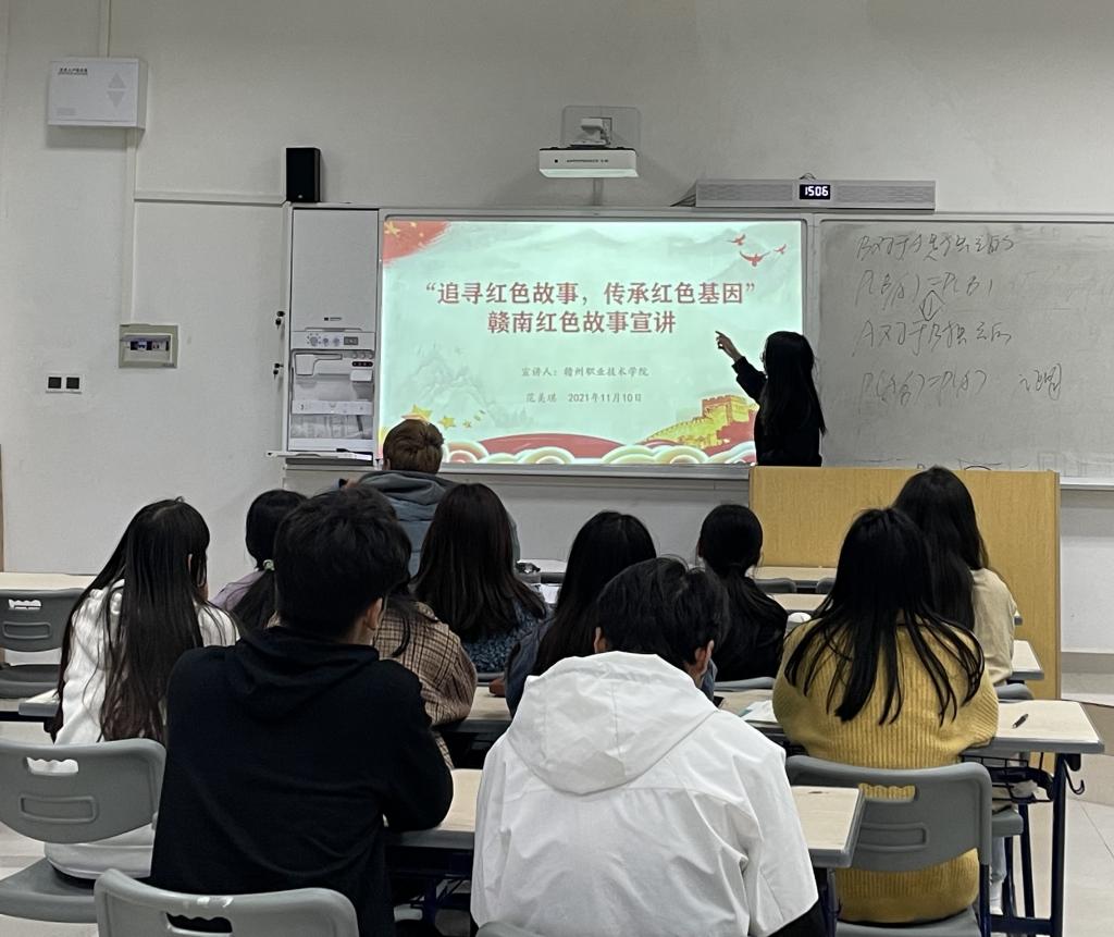 范美琪老师作《“追寻红色足迹,传承红色基因”赣南红色故事》宣讲,用一个个感人肺腑的赣南红色故事,让在座的同学们感受到幸福生活的来之不易。