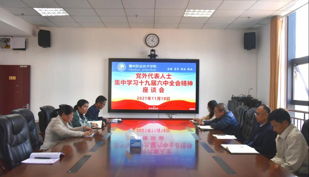 11月18日下午,学院党外代表人士在行知楼六楼会议室集中学习十九届六中全会精神,并结合学院和岗位工作实际,交流了学习心得体会。