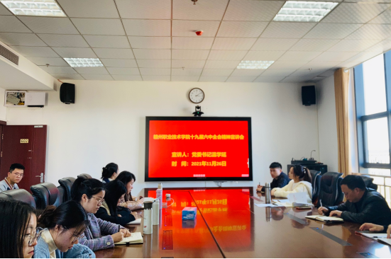 在全国上下深入学习贯彻党的十九届六中全会精神之际,11月26日下午,学院党委书记温学延在行知楼602会议室为师生作专题宣讲报告,马克思主义学院党支部的党员代表、青年马克思主义理论学习社的学生代表以及思政课教师代表参加了报告会。
