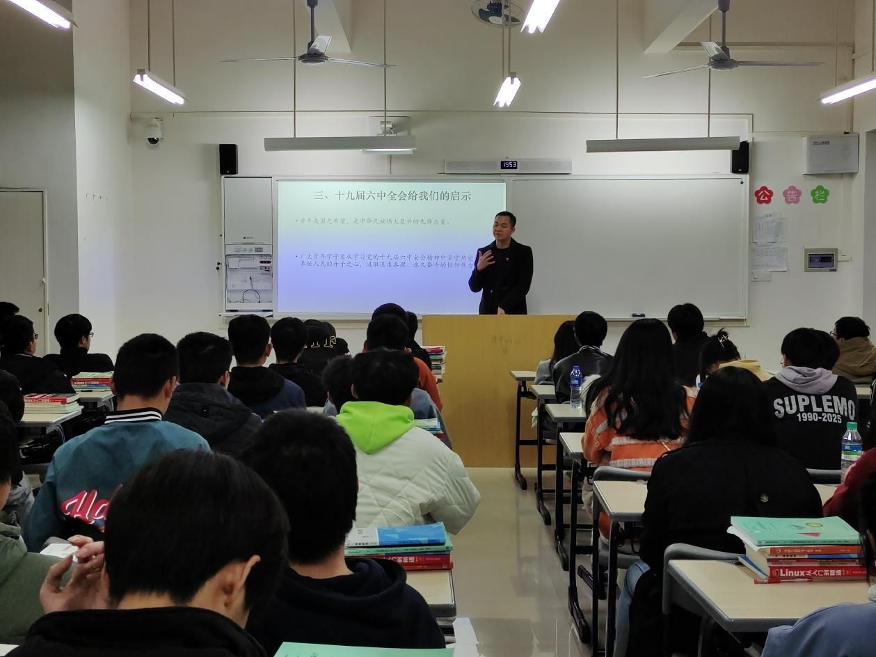 为深入学习贯彻党的十九届六中全会精神,教育引导广大青年大学生与祖国共进、与时代同行,12月6日晚,信息工程系辅导员通过开展思想政治主题班会的形式,组织本系学生集中学习党的十九届六中全会精神。