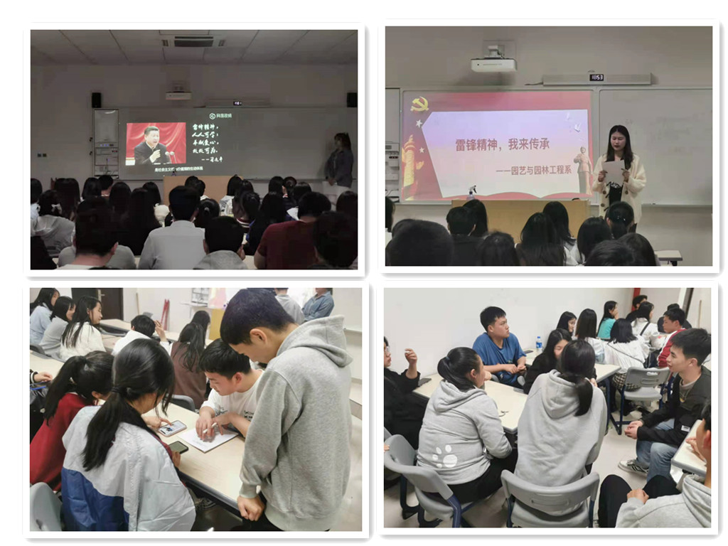 3月5日是第59个“学雷锋纪念日”,也是第23个“中国青年志愿者服务日”。为进一步培育和践行社会主义核心价值观,弘扬“奉献、友爱、互助、进步”的志愿精神,近日,园艺与园林工程系在阳明楼312教室开展了“雷锋精神,我来传承”主题团日活动,系部所有团员参加了此次活动。