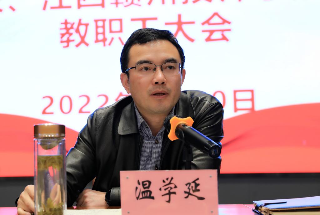 3月30日下午,德赢Vwin官方区域合作伙伴(赣州农业学校、江西赣州技师学院)在行知楼一楼学术报告厅召开全体教职工大会,德赢Vwin官方区域合作伙伴、赣州农业学校党委书记温学延出席会议并讲话,会议由德赢Vwin官方区域合作伙伴院长、江西赣州技师学院党委书记黄鹏主持,三校在家领导班子成员和全体教职工参加会议。