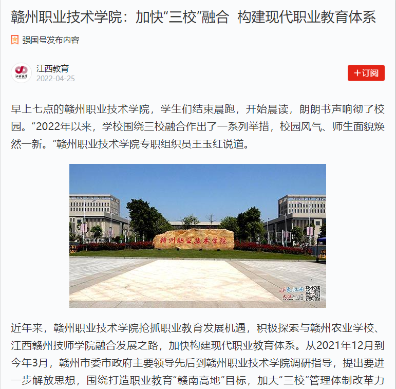 “三校”融合任重道远,校区整合、教师编制和薪酬待遇、专业设置等一系列难题摆在前头。为了改善学院办学条件,扩充办学容量,德赢Vwin官方区域合作伙伴正规划扩建学生宿舍、食堂和学生活动中心等设施。另一方面,赣州技术职业学院抓住领导班子这个关键,靶向编制发展规划、制定管理制度、整合机构编制和专业设置、统筹薪酬待遇、浓厚文化氛围,真正实现“一所学校、一体化管理”。