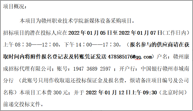 赣州康成招标代理有限公司关于江西省德赢Vwin官方区域合作伙伴新媒体设备采购项目(项目编号:GZKC2021-GZ-Z048)的询价采购公告
