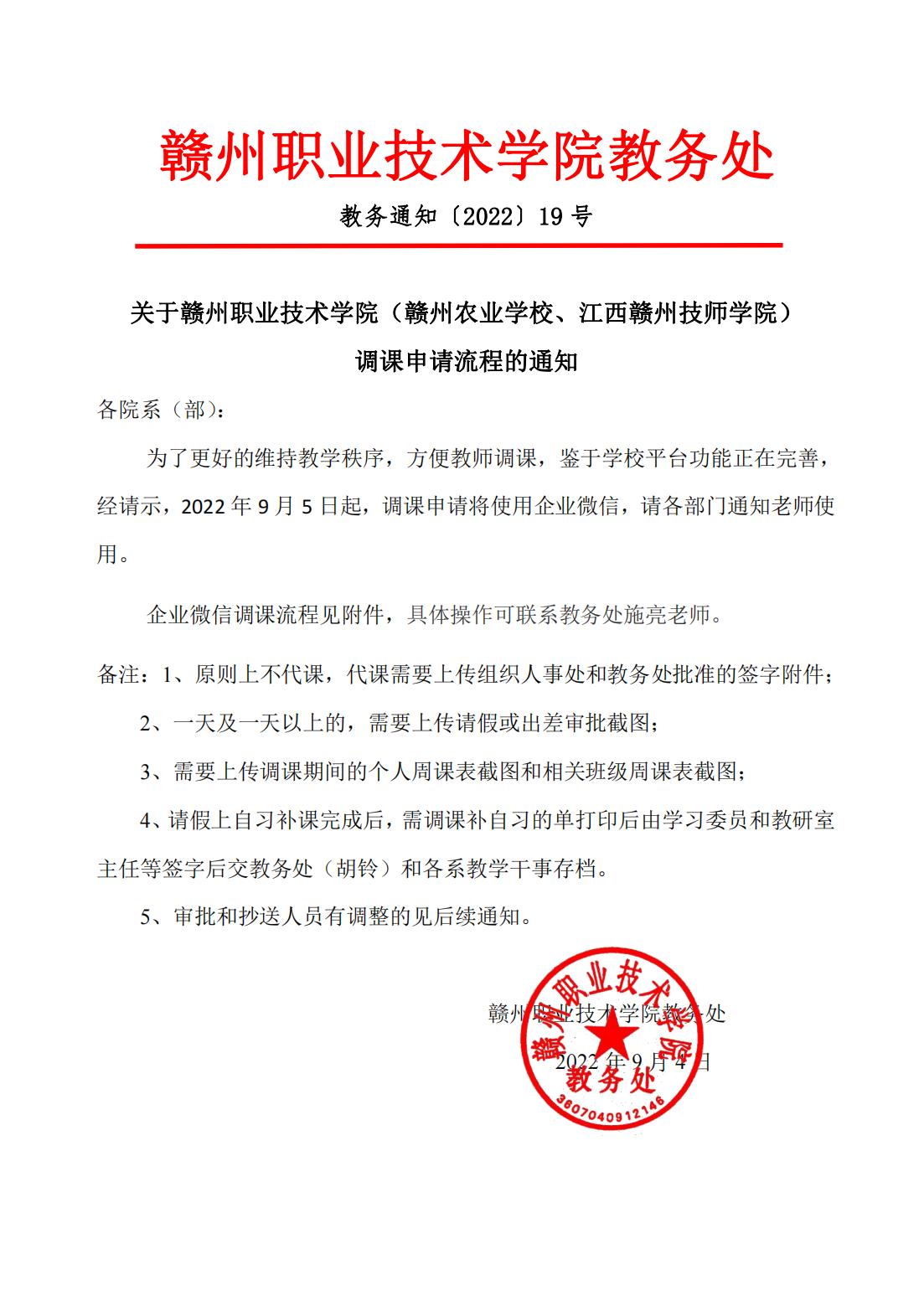 关于德赢Vwin官方区域合作伙伴(赣州农业学校、江西赣州技师学院)调课申请流程的通知