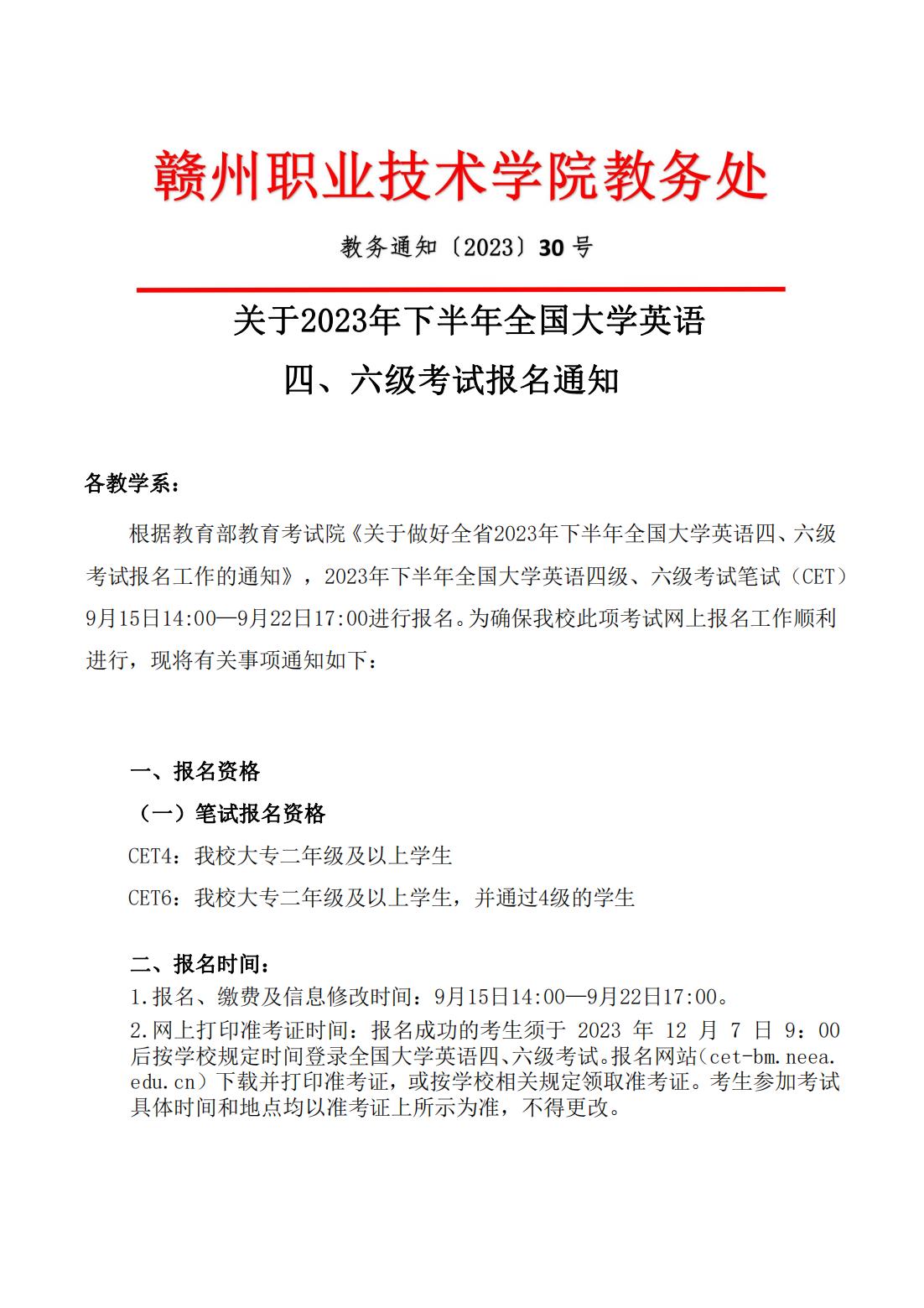 关于2023年下半年全国大学英语四、六级考试报名通知.pdf