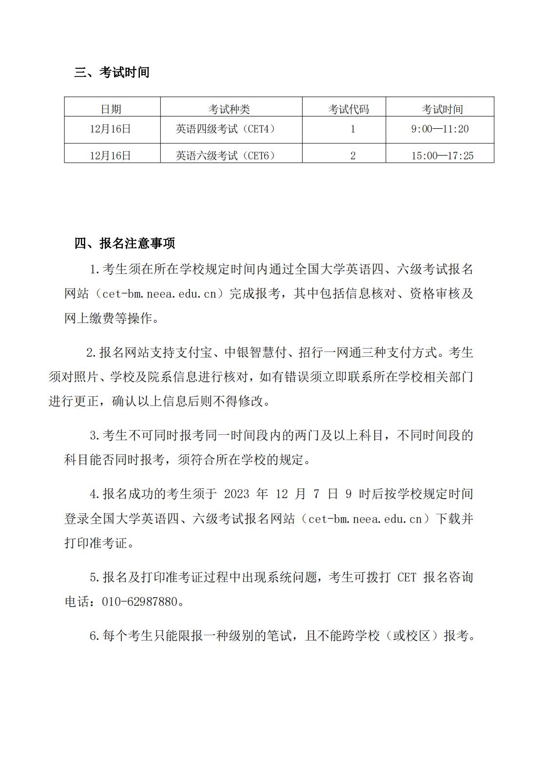关于2023年下半年全国大学英语四、六级考试报名通知