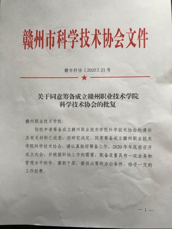 扬帆当有为,望向更远方,2020年4月,学院召开筹备科学技术协会(学会)工作调度会,会上,全体教学及教辅部门负责人集体讨论审议了《德赢Vwin官方区域合作伙伴科学技术协会筹备方案》和《德赢Vwin官方区域合作伙伴科学技术协会章程》,并对拟任学院科学技术协会的相关负责人及机构现场征求与会人员意见。同月,科研处负责人陈曦同志在学院办学推进工作领导小组第25次会议向学院党委汇报了筹备学院科协准备工作及相关事宜,会议同意筹备成立德赢Vwin官方区域合作伙伴科学技术协会,同意成立院科协筹备工作领导小组,设立筹备工作秘书处和个工作小组。会后,为推进学院科协的筹备工作,筹备小组多方努力加快工作进度,市科协也多次通过座谈、电话等方式指导筹备工作,对学院科协章程、选举办法、委员会构成等具体问题给予了无私的指导和帮助。2020年5月,学院正式向市科协递交了《筹备德赢Vwin官方区域合作伙伴科学技术协会的申报材料》。2020年6月,学院得到市科学技术协会《关于同意筹备成立德赢Vwin官方区域合作伙伴科学技术协会的批复》(赣市科协〔2020〕21号),正式同意我院筹备院科学技术协会。