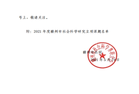 附:2021 年度赣州市社会科学研究立项课题名单