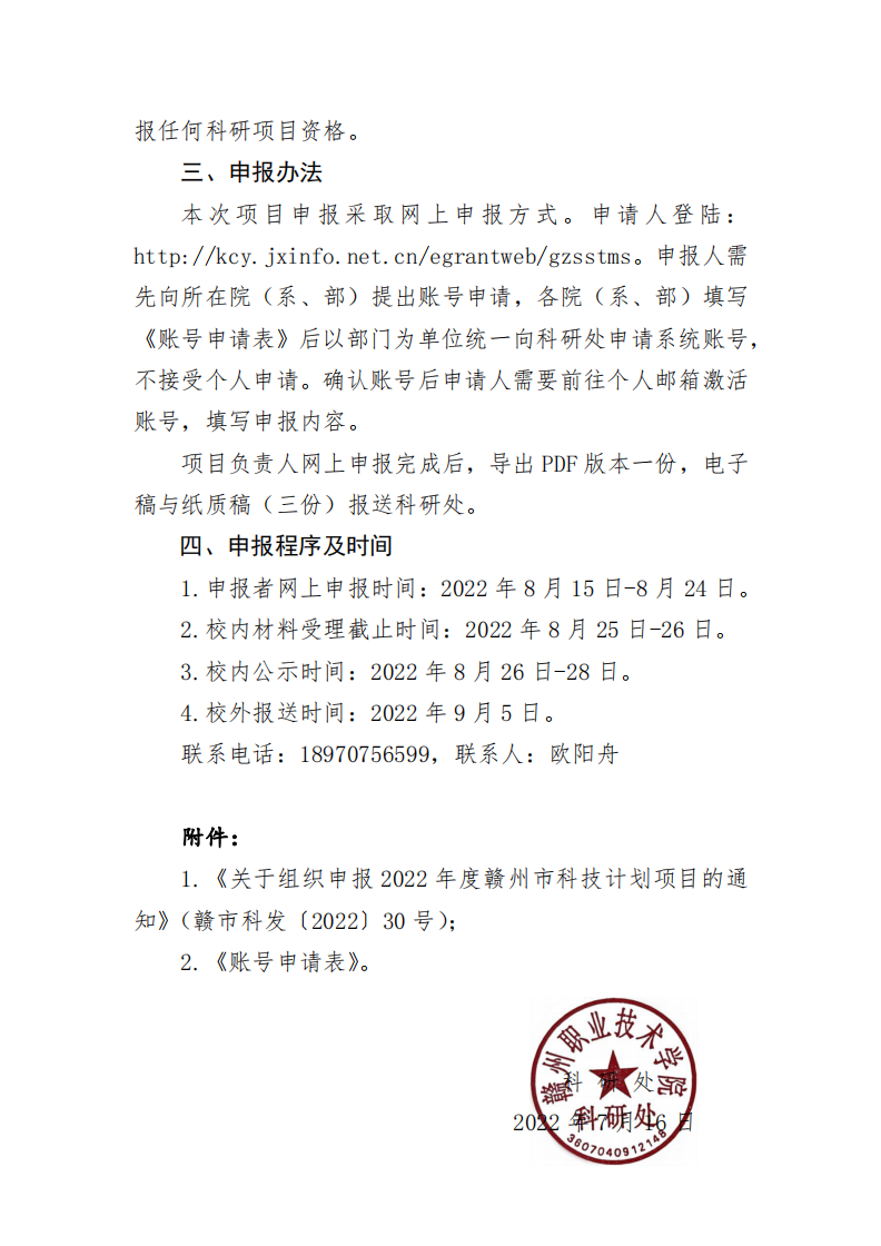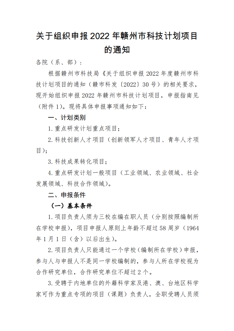 【项目申报】关于组织申报2022年赣州市科技计划项目的通知