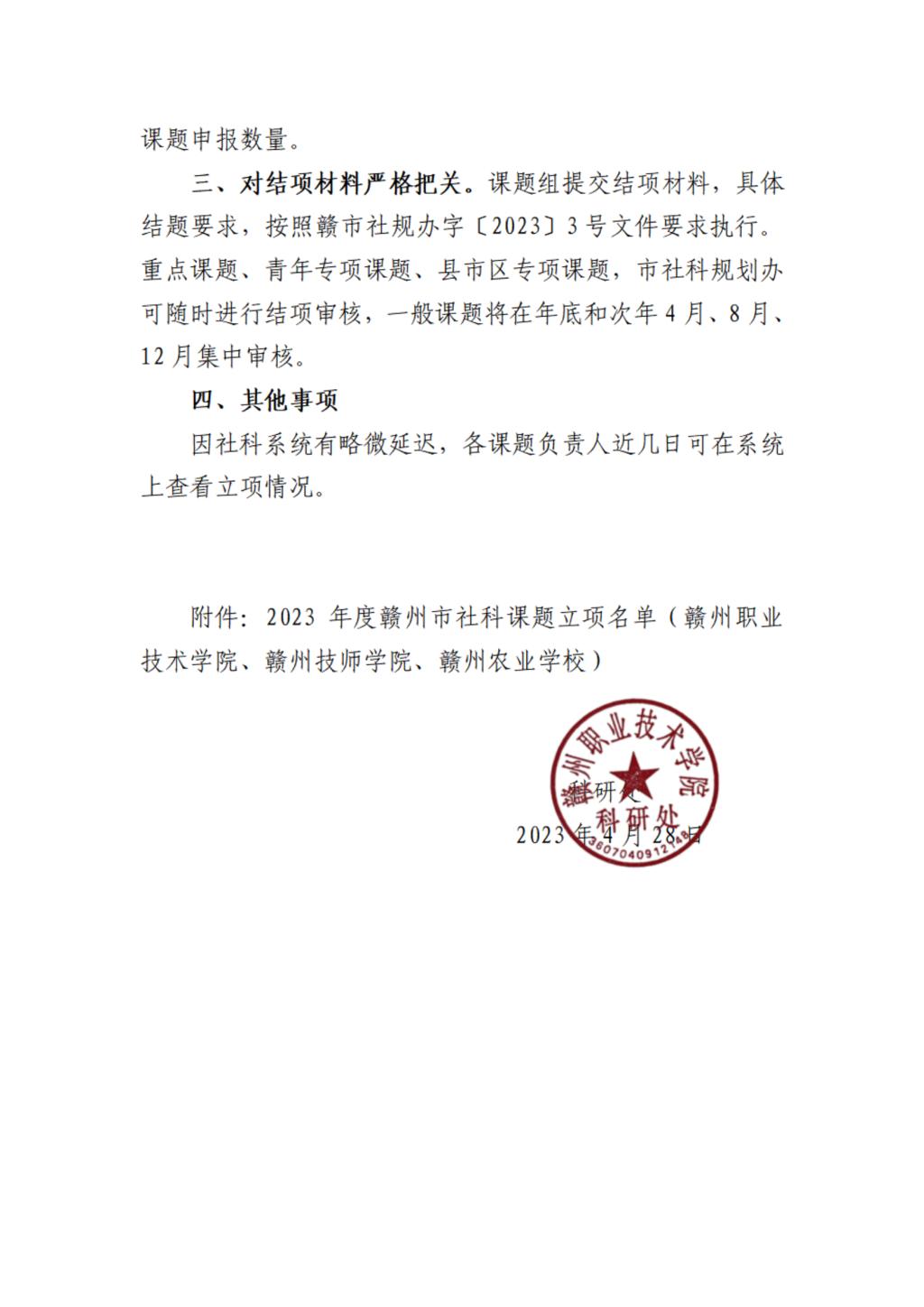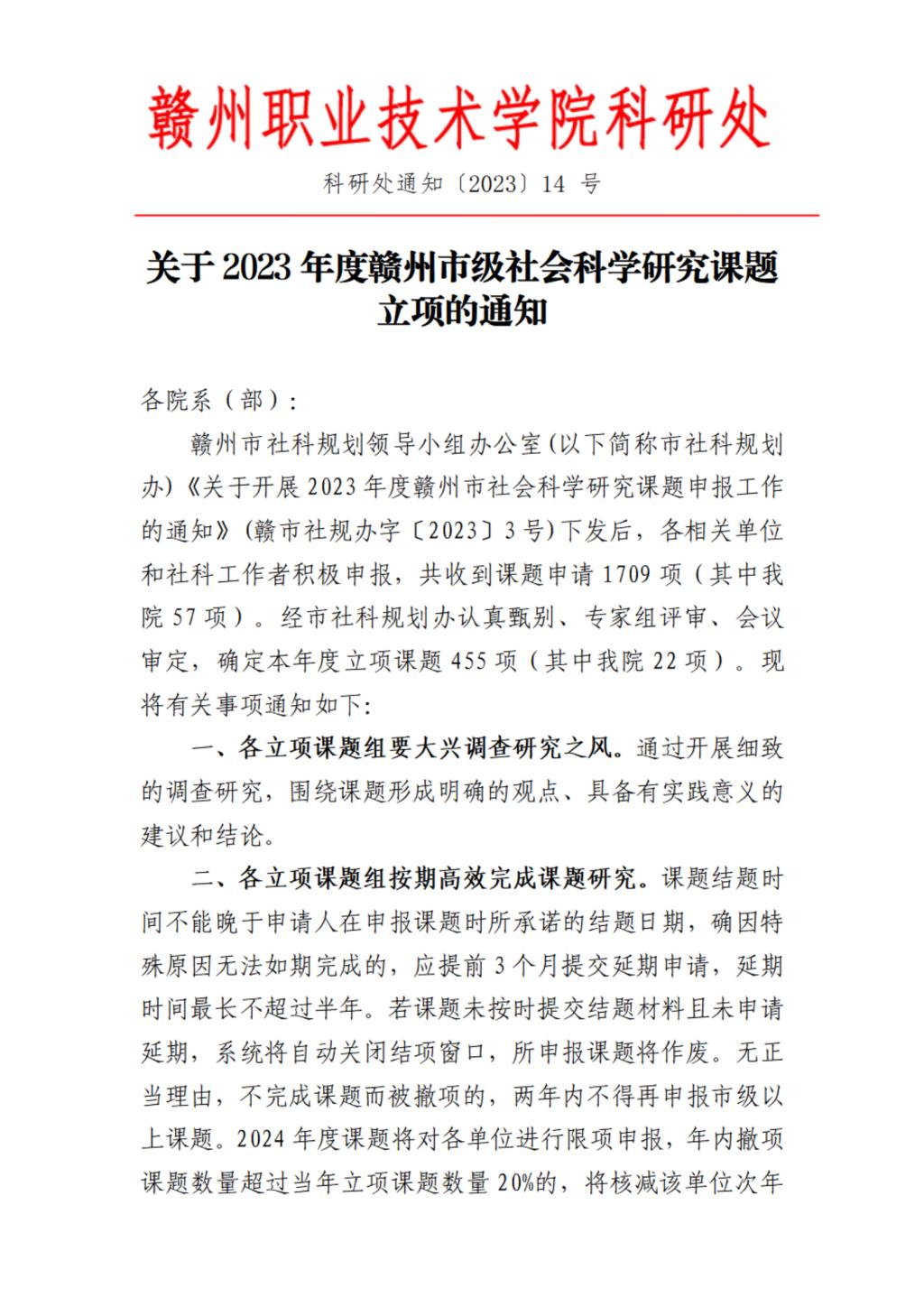 关于2023年度赣州市级社会科学研究课题立项的通知