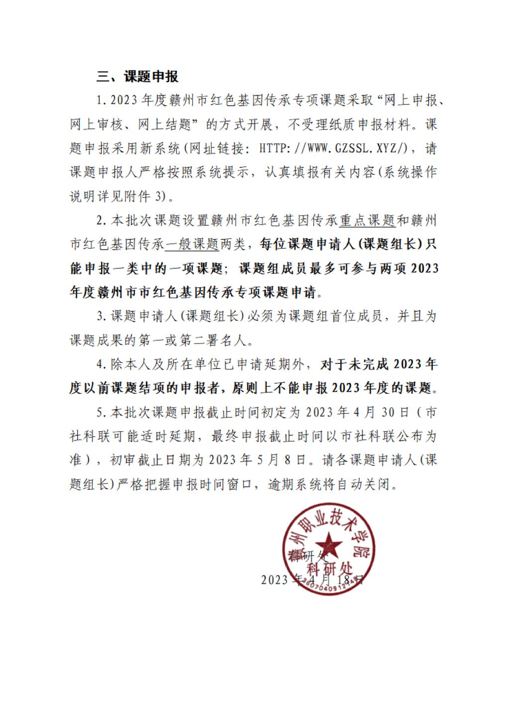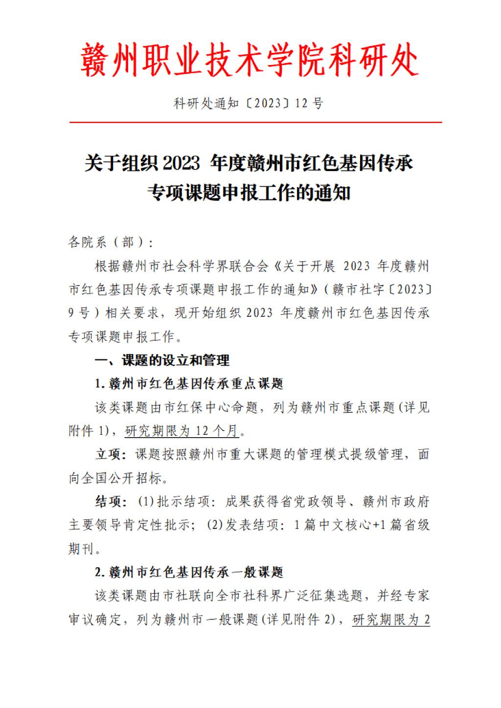 关于组织2023年度赣州市红色基因传承专项课题申报工作的通知