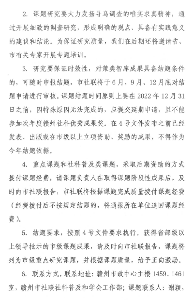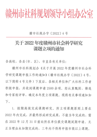 科研处将严格按照《关于2022年度赣州市社会科学研究课题立项的通知》要求,引导各教学系、课题组积极做好课题研究工作,高质量完成研究任务,取得预期研究成果。