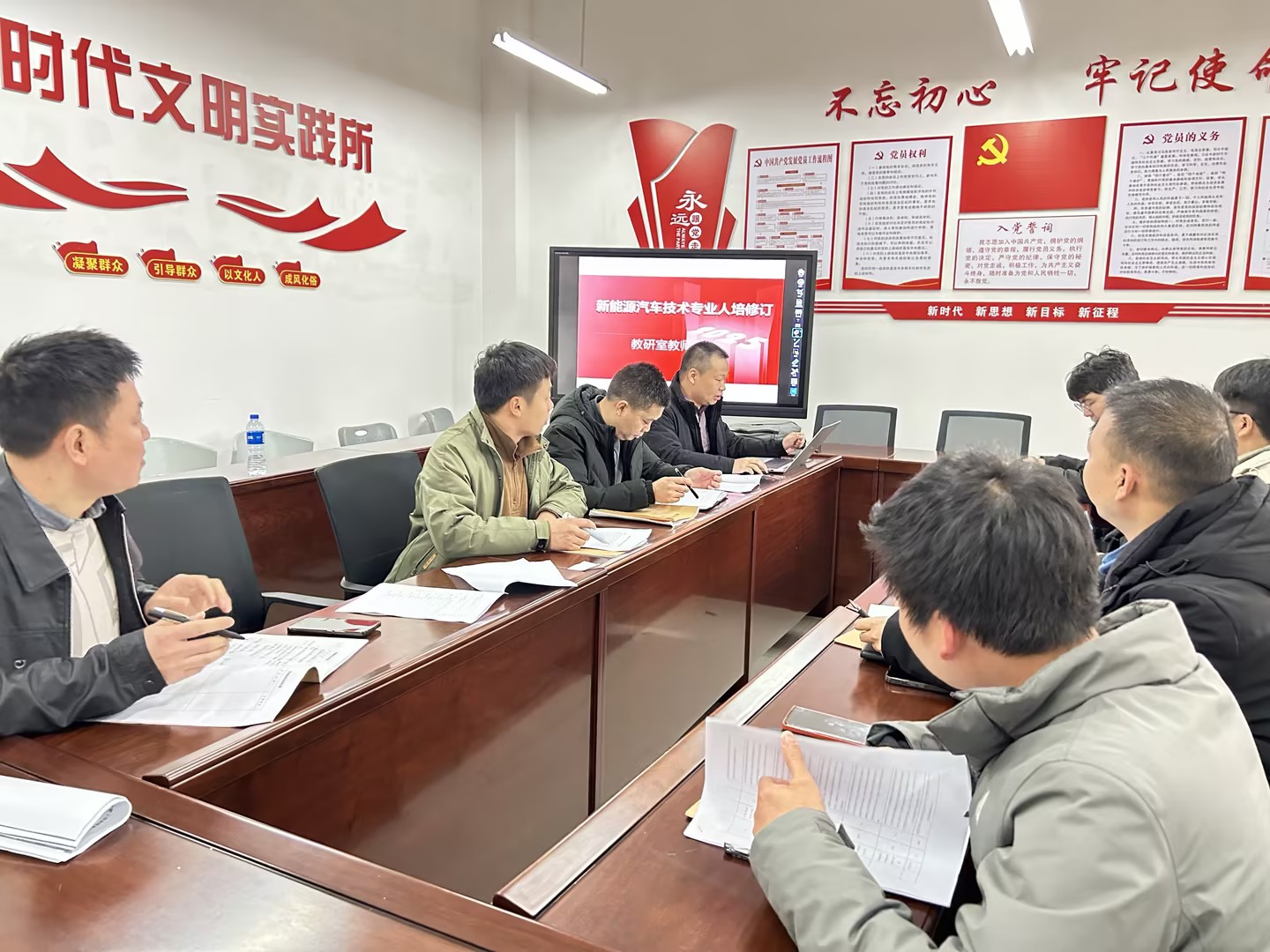 最新版《国家职业教育专业教学标准(新能源汽车技术专业)》已公布,为更好对接行业技术变革与区域产业需求,2025年2月26日,学院新能源汽车技术专业教研室召开专题研讨会,系统学习研究启动2025级专业人才培养方案修订工作,教学副院长明建平及教研室全体在校教师参加会议。