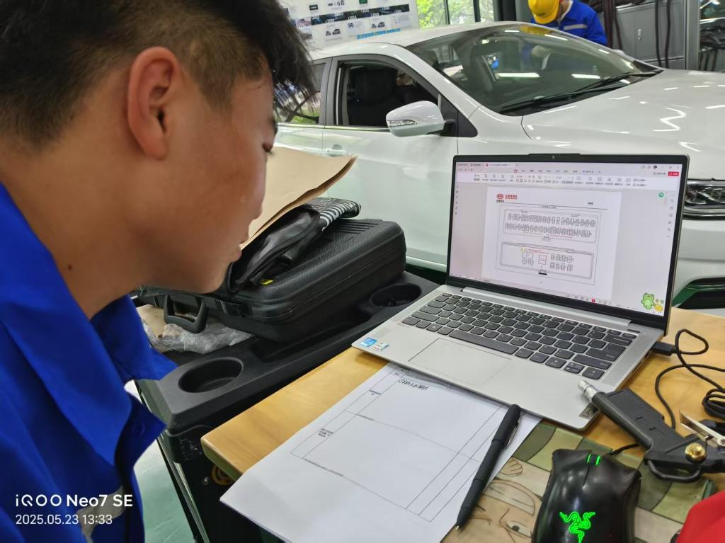 同期,由李建飞老师牵头负责的“汽车故障检修”赛项为校级技能竞赛,竞赛前采用了"理论+实操"双轨模式培训训练,团队协作展现了师生团队精湛的技术素养。5月23日,百余名选手经过抽签、工位整理、车辆检查、现象分析、故障诊断排除、填写工单等环节角逐,决赛阶段对标省赛标准,选手们通过精准故障分析展现了新一代技能人才的专业功底与团队精神。