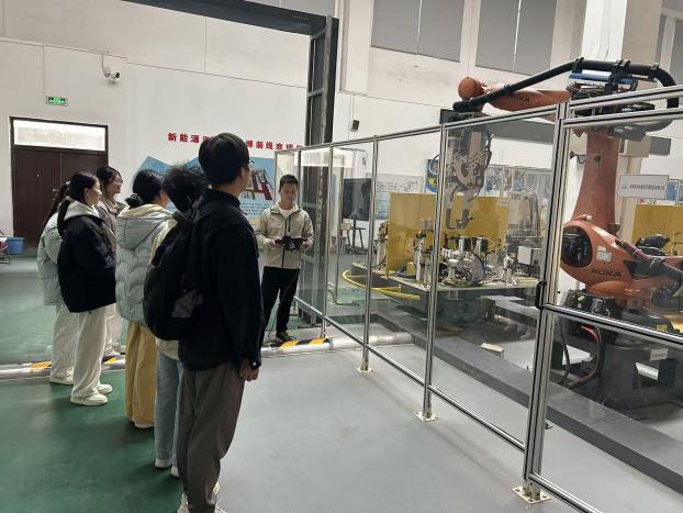 开放日现场,实训室设置了“新能源汽车智能制造(工业机器人)”“驱动电机管理与控制系统”“中德SGAVE虚拟仿真技术”和“新能源汽车分控联动技术”四大技术实训室开放区。在智能制造(工业机器人)区,师生团队演示了工业机器人生产实践中的路径规划技术,展现了AI算法在新能源汽车制造领域的应用潜力;驱动电机展台则通过实时数据监测,揭示了新能源汽车驱动电机总成的运作原理。