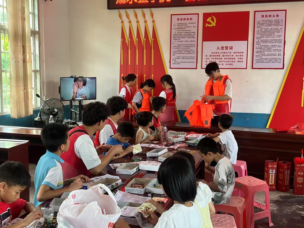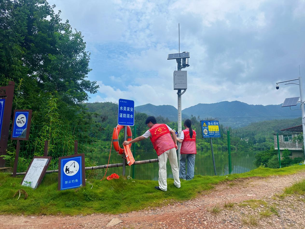 立新村水库、河流众多,而且正逢暑期,夏日炎炎,防溺水工作尤为重要。防溺水宣传也是此次“三下乡”的重要任务之一,志愿者团队在立新村党群服务中心工作人员的带领下,对周边水库的防护设施进行了巡查,对水库救生设备存放点的物品进行了整理。他们还向村民和孩子们宣传防溺水知识,用生动的案例和通俗易懂的语言,让大家深刻认识到溺水的危险。一句句叮嘱,饱含着志愿者们对乡村安全的关切。