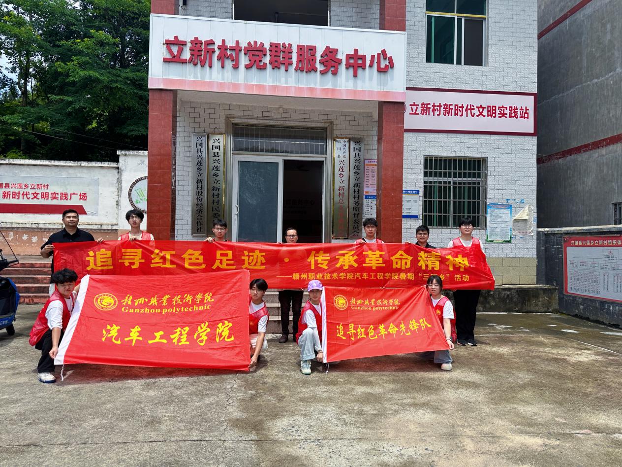 为深入学习贯彻习近平新时代中国特色社会主义思想,弘扬红色革命精神,助力乡村振兴,7月14日,汽车工程学院“追寻红色革命先锋队”志愿者赴兴国县兴莲乡立新村新时代文明实践站,开展以“追寻红色足迹·传承革命精神”为主题的暑期“三下乡”社会实践活动。活动聚焦防溺水安全教育、儿童心理健康关爱及红色文化传承,通过实地调研、宣传教育、互动实践等形式,为当地村民和儿童带去温暖与关怀。