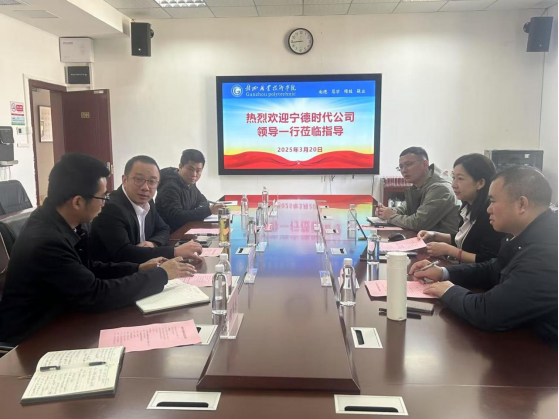 张漪首先对学校的热情接待表示感谢,并对学校的发展给予了高度评价,接着介绍了宁德时代新能源后市场创新人才校企合作项目(CIEP)和时代工坊项目。最后双方围绕人才培养、学生就业等进行了深入探讨。